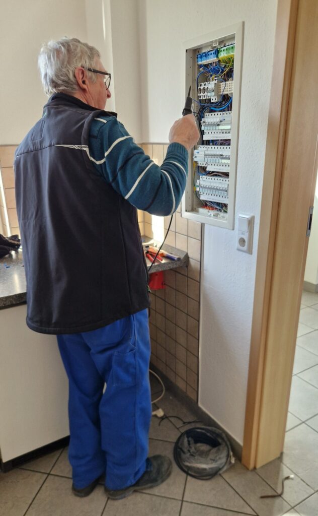 Nutzer und Gäste wird es freuen: Im Gemeindehaus ist elektrisch nun wieder alles top. Mit fachlichem Knowhow und dem nötigen Blick fürs Detail haben Axel Goldmann und Ludwig Meyers in den vergangenen Wochen Anschlüsse geprüft, Leitungen neu verlegt und veraltete Verbindungen außer Betrieb genommen. Die Stromversorgung funktioniert nun in allen Räumen in optimierter Verteilung und sicher.